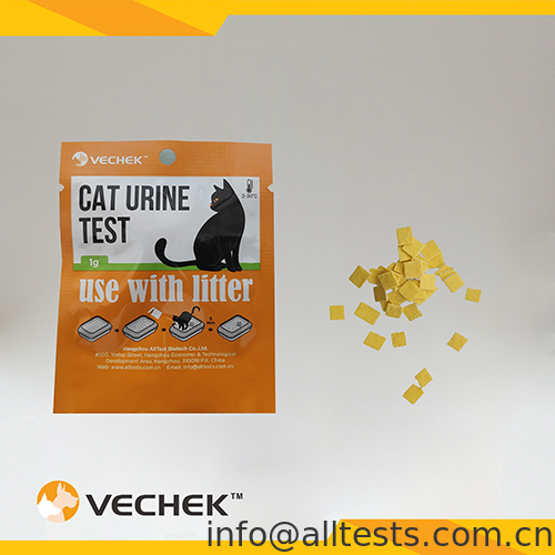 2고양이의 소변 크레아티닌 테스트를 고양이의 양털 위에 가능한 한 균일하게 분포하십시오.