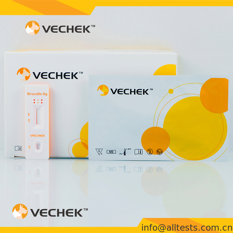 The Brucella Antigen Rapid Test is based on sandwich lateral flow immunochromatographic assay. The test cassette has a testing window for the observation of assay running and result reading. The testing window has an invisible T (test) zone and a C (control) zone before running the assay. When the treated sample was applied into the sample well on the test cassette, the liquid will laterally flow through the surface of the test strip and react with the pre-coated Brucella antibody. If there are anti-Brucella antigens in the specimen, a visible T line will appears. The C line should always appear after a sample is applied, which indicates a valid result. By this means, the test cassette can accurately indicate the presence of Brucella antigens in the specimen.
